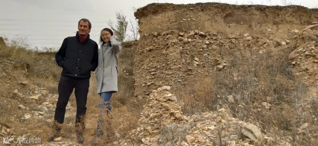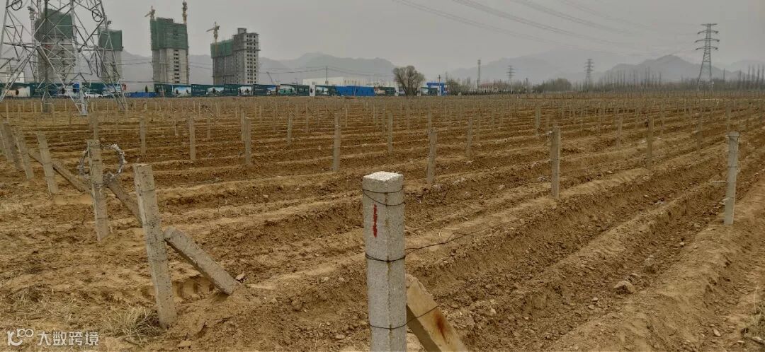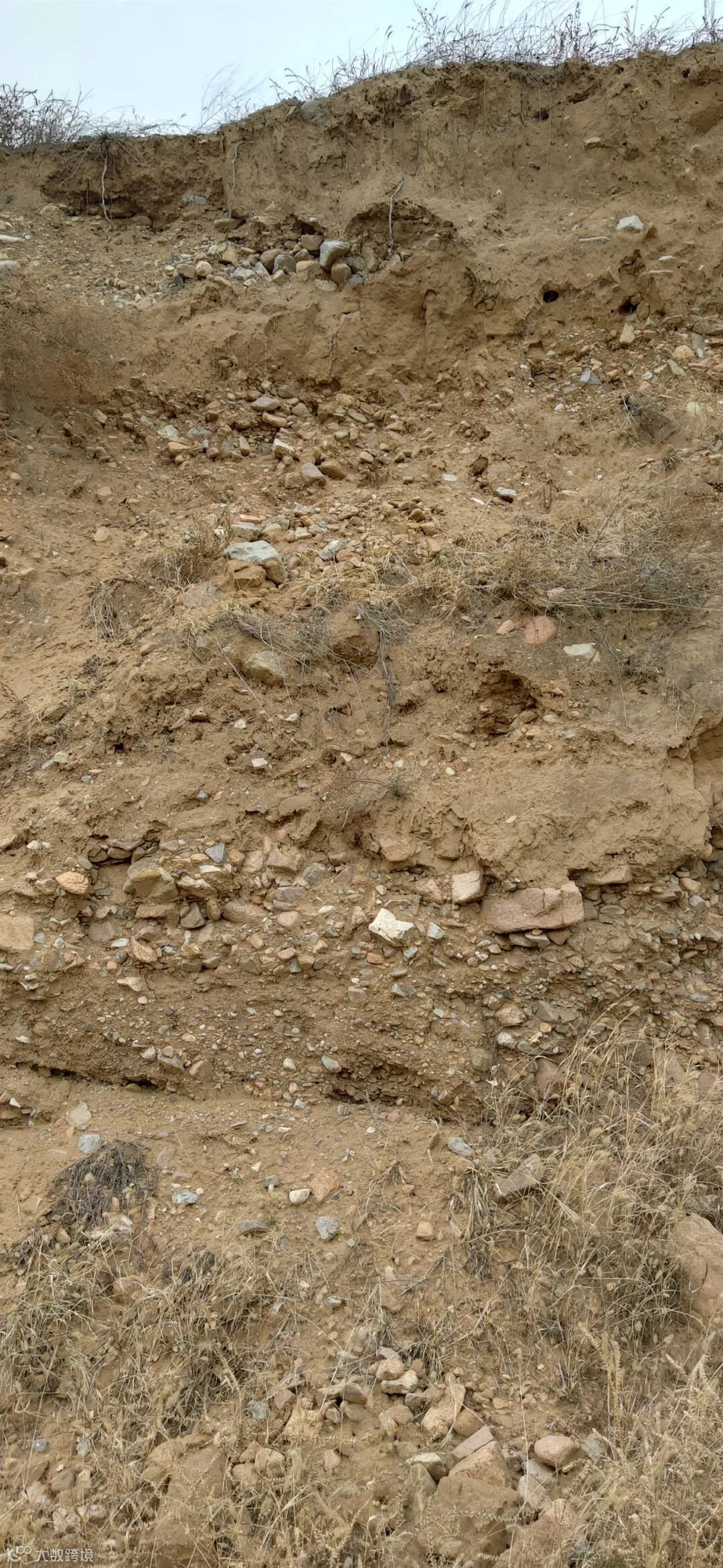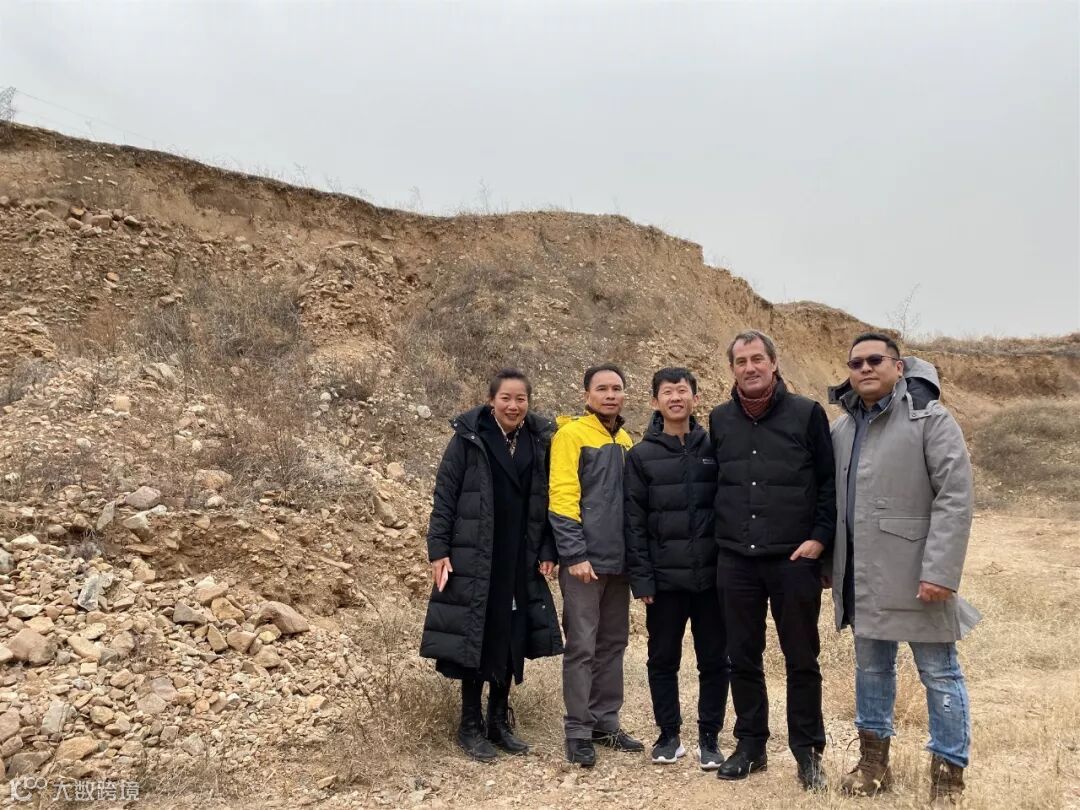 老佛爷先生提出要去地里看看土壤成分,酿酒师于是带我们走出办公室去葡萄田,时值深秋,天气渐冷,北风呼呼,田里的藤已全部砍去移走,刚埋好土,{华北靠内蒙古,冬天极寒冷,葡萄藤必须埋土过冬},所以整片葡萄田只见黄土了,我们边走边看边询问边了解,酿酒师又带我们走到葡萄田边一个大坑,大坑本来挖来有用,后来改变主意了但没有填埋留下来的,这让我们直观的看到土壤成分,{土壤以黄土及砾石为主,没有大石头,土壤细密保水性还可以}。大伙站一齐合影留念。