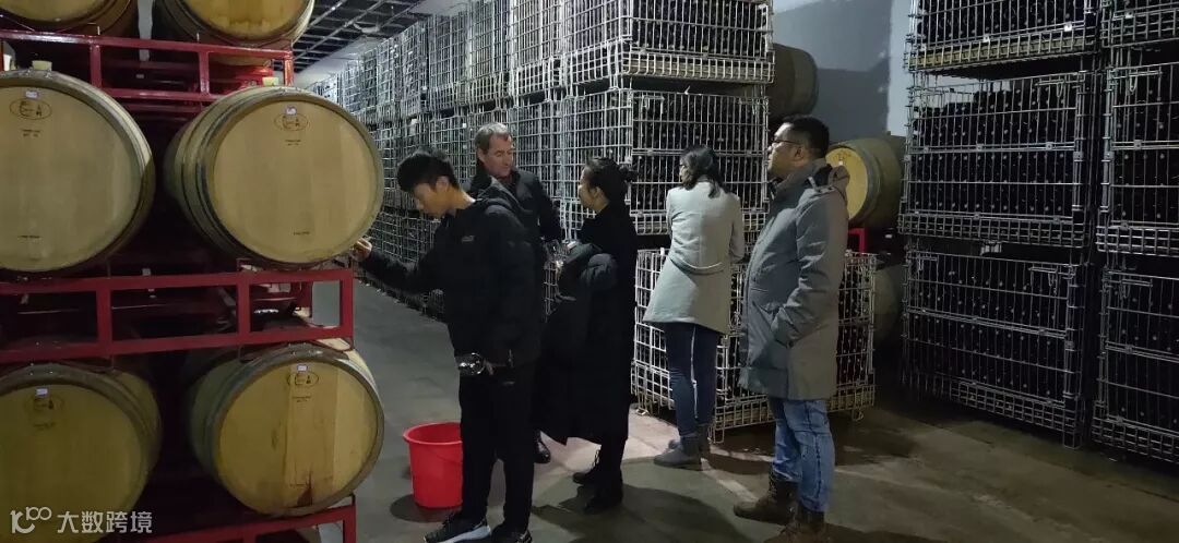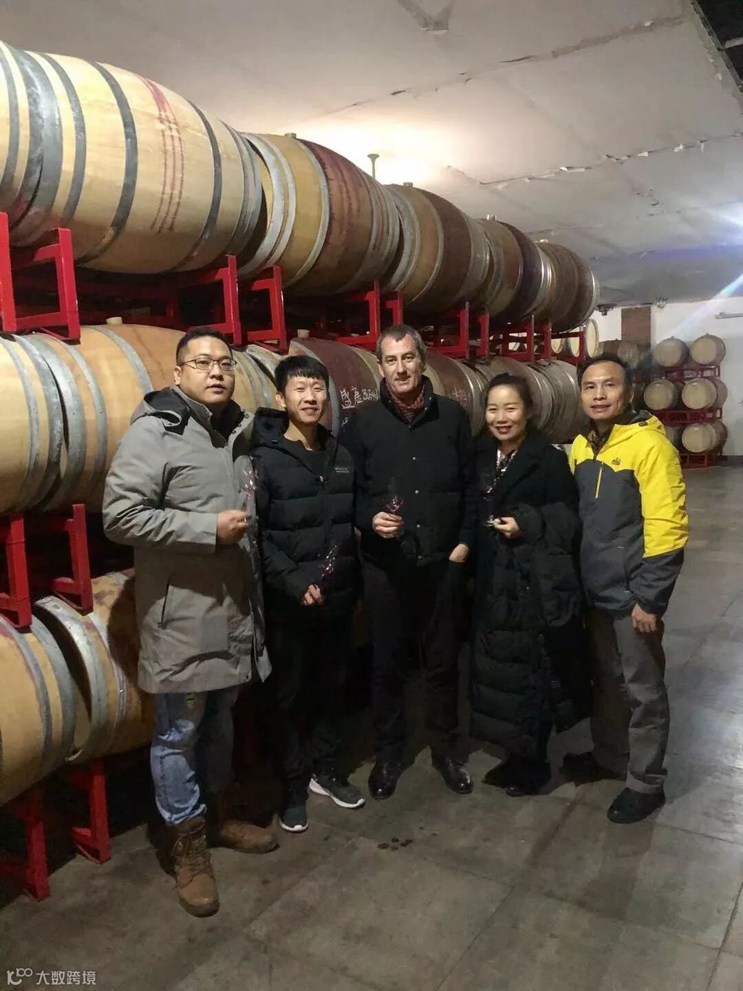 沿着两边都是存酒间的长廊走到存酒库门口,几十只未有开封的新橡木桶叠放堆在两边,酒庄基本每年都进些法国的新桶回来存酒,老佛爷先生仔细看了酒桶上的烙印,酿酒师说来自不同桶厂的桶,但都是法国桶。酒窖两边堆满灌满刚入桶陈酿的红酒,还有很多大铁框装满未有贴标的酒。老佛爷先生边询问边让酿酒师抽桶里的酒出来倒给大家品鉴,大家跟着酿酒师陆续品鉴了数款不同品种的干红,稳德公司几个人都觉得几款酒酒体及色香味都不错,而老佛爷先生指出:这几款红酒酒体丰满口感醇厚但酸度稍微偏低,平衡感稍欠,{我们和酿酒师都认可,也明白中国消费者不喜欢酸度偏高的酒},当然这问题容易解决。