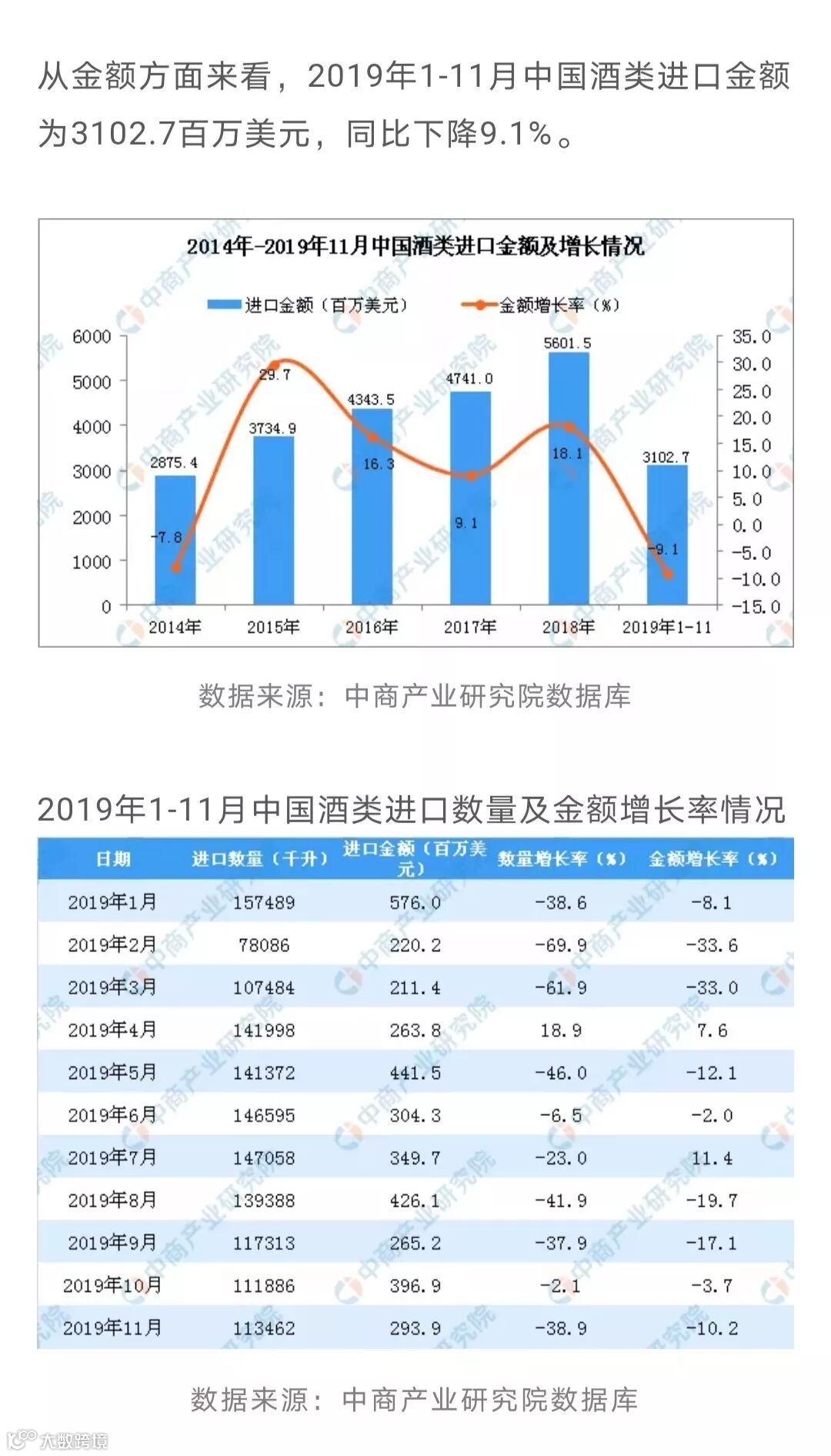 综合以上数据及结合中国现在市场环境及消费因数,葡萄酒进口量下降,消费金额下跌是必然结果,笔者看来,2020年中国葡萄酒消费市场进口酒还是以低端消费为主,紧衣缩食还将继续。{而国产葡萄酒,生产及销售下跌更严重,只有少数几家企业有少许上升,如茅台葡萄酒}。