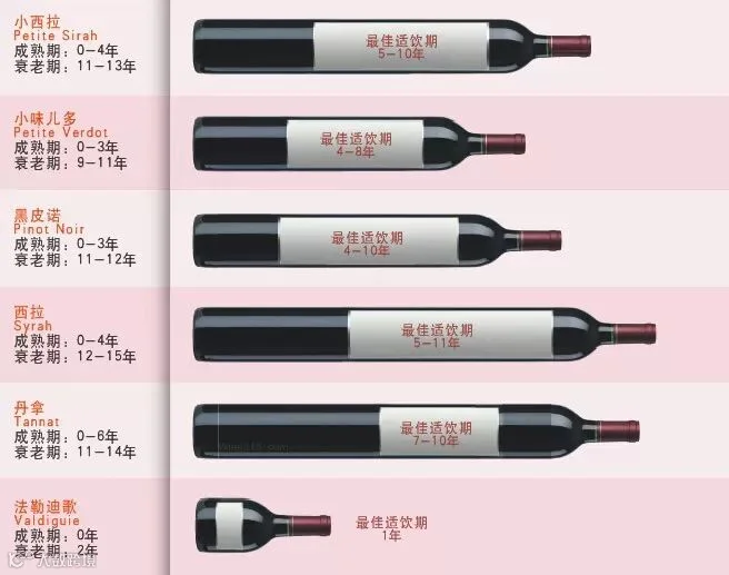不是所有的品种拥有陈年能力,甚至在欧洲需要陈年的葡萄酒,也会经常在美国更早的消费掉。然而,不知道理想的存储条件或者陈年时间,你可能会失去你的葡萄酒最佳适饮期带来的美妙。使用这个指南可以准确找出什么时候应该抹去酒窖老葡萄酒瓶上的尘土,以及享受的你的最佳适饮期的葡萄酒。
