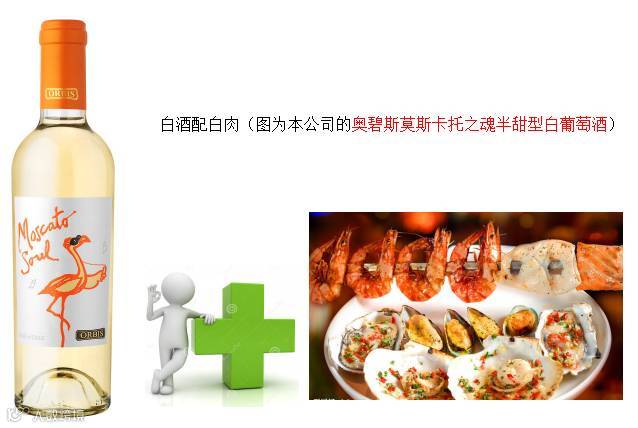 以白葡萄酒配白肉和海鲜,红葡萄酒配深色和肉类为基础,参考味道之间的协调关系——请记住以下三点:咸味会增强酒的苦味;酸味会衬托出酒里的甜味;而腥味和辣味则可以中和酒的酸味。