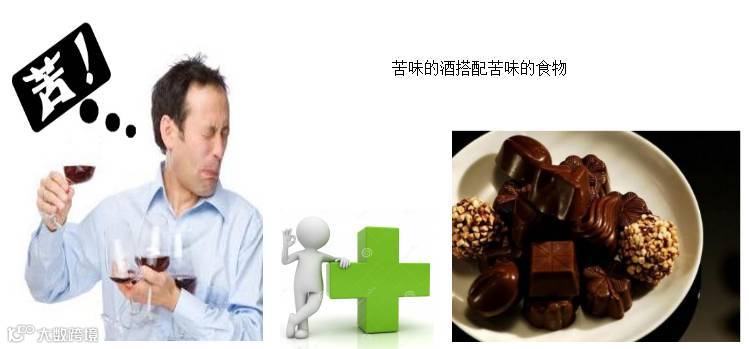 互补:甜食配甜酒,口味重较咸较浓的红肉或川菜配单宁重的红葡萄酒,口味清淡的海鲜或蔬菜配清爽的白葡萄酒或单宁柔和的红葡萄酒。