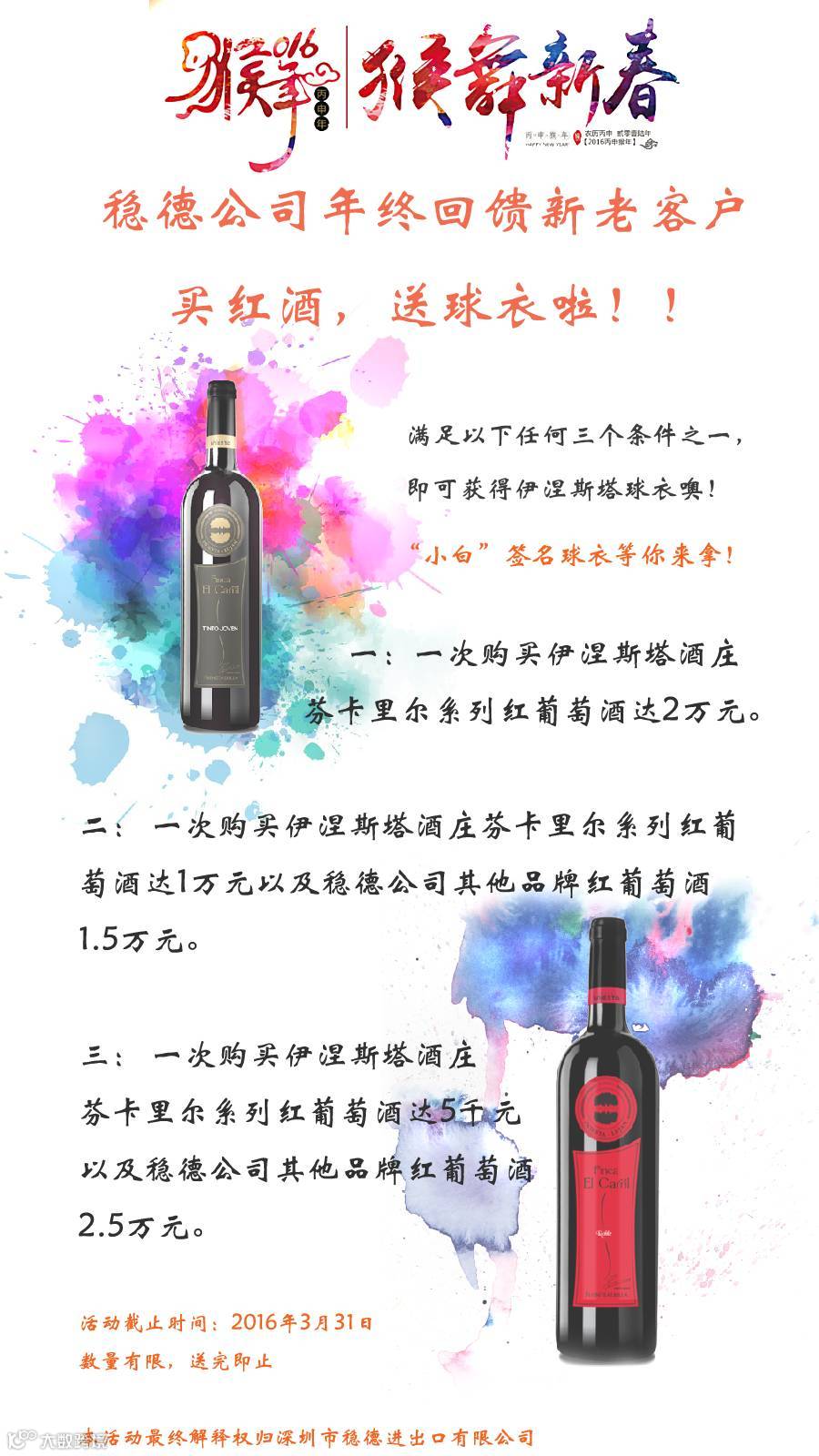 买红酒,送球衣啦!!先到先得,数量有限,送完即止哦!!