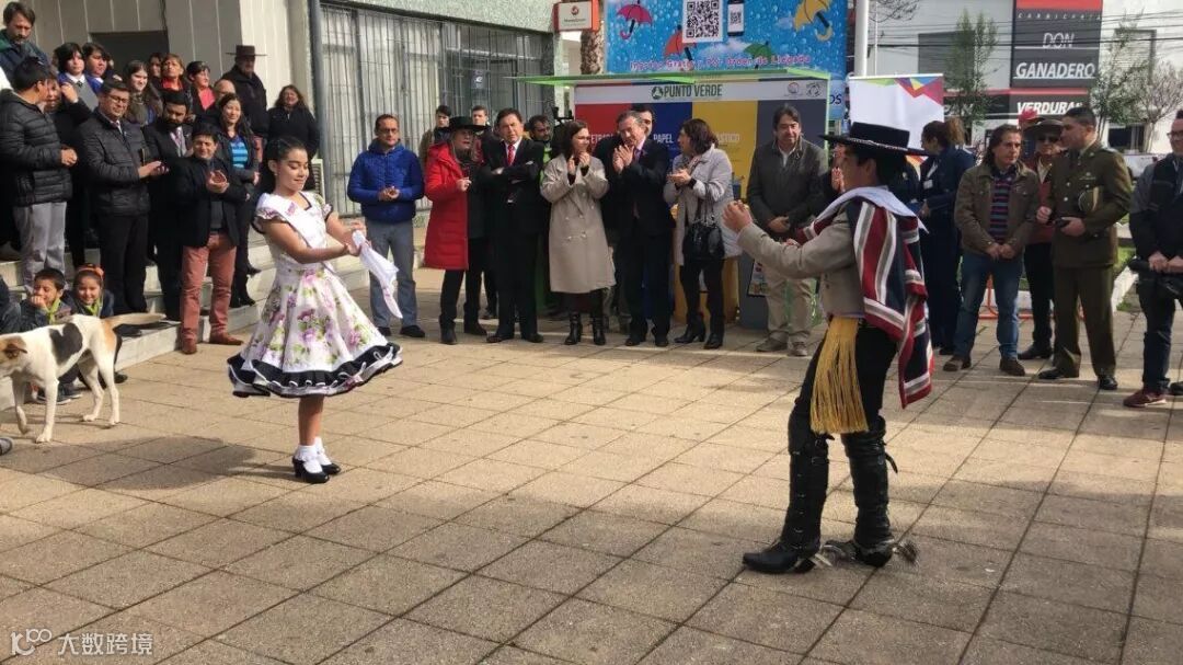 智利行第三日{6月6号},早上在五星级酒店Monticello hotel&casino吃完丰富的西式早餐,集体坐上宝松酒庄安排的16座商务专车前往莫莱谷的酒庄,经过两个多小时的行程到达莫莱河旁边的San Javier城镇上午餐,品尝当地的特色菜牛肉汤等及当地的啤酒与可口可乐,在餐厅回车上途中,偶遇当地政府与学校举办垃圾分类的宣传活动,看完小朋友的精彩演出后,我们讲明是来参观宝松酒庄的中国进口商,政府官员与警察长对我们的到来表示热烈欢迎,纷纷邀约我们合影,当地不同媒体也在现场采访报道。