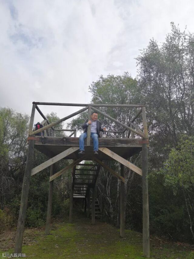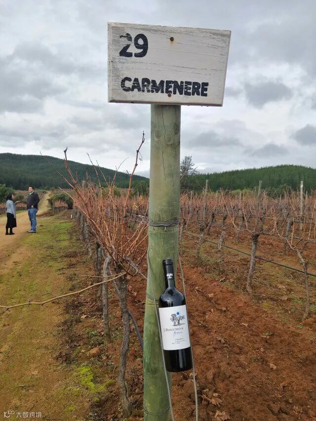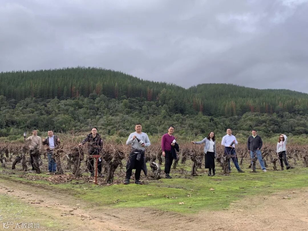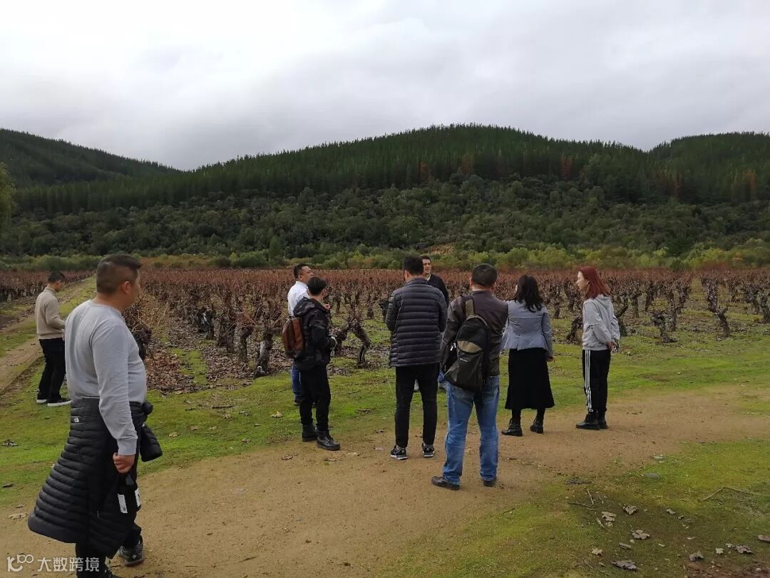 接着来到山边的百年老藤酒园,这边老藤主要是酿造名阁等高端酒,大家在老藤园区边上站呈七字型与老藤合影,又把酒摆放老藤树上或边上拍摄不同角度艺术照片,接着参观了在树丛中的超过120年以上树龄的野生派斯Pais老藤葡萄树,把派斯干红摆在派斯老藤与树立的牌匾之间不同位置拍照。在派斯老藤的树丛中酒庄还搭建了观景台与过道,方便客人或游客参观拍照,我们在观景台与过道拉条幅拍大合照。