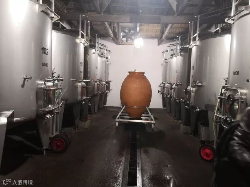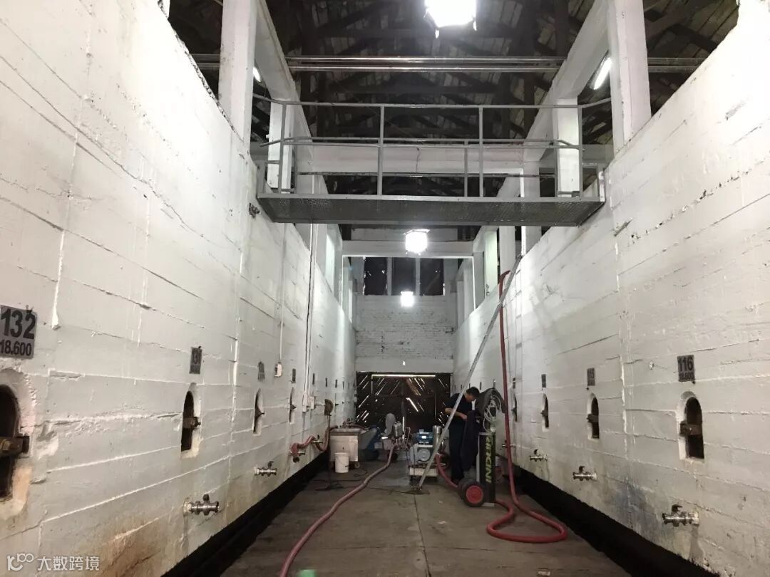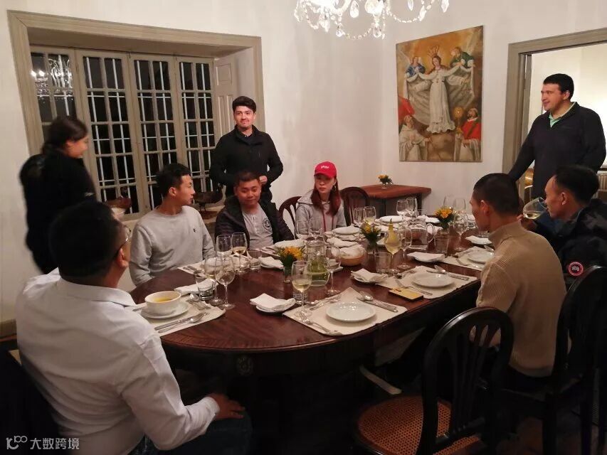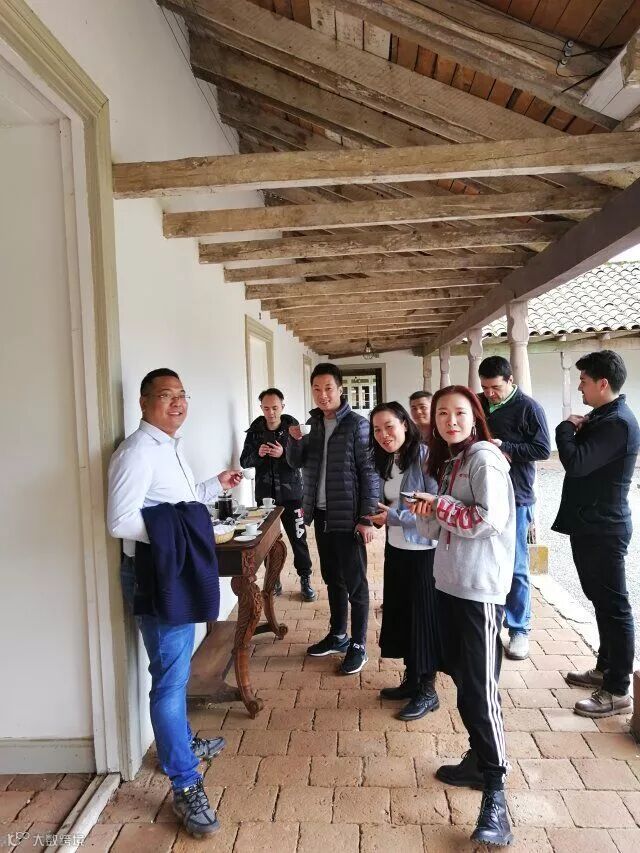 随后返回酒厂参观橡木桶储存室,接着去看刚建厂时制造摆室内有百年历史的水泥槽发酵池,每个槽口都有编号与容积单位。室外门口矗立着四个存酒量达122.000公升的不锈钢发酵罐,顶部都有随时可以伸缩的遮阳棚,大家随意参观了酒厂的不同设备,各自随拍,大家都有同感,宝松酒庄真大,实力雄厚,财大气粗;随后来到临时周转仓及洗瓶装瓶贴标车间,车间里工人们都在忙于工作,大家也是纷纷拍摄,弗朗西斯科介绍在周转仓与车间的二楼是办公区域及品鉴室,由于宝松酒庄并购另一家智利酒庄毕思甘,在旁边已在施工建造新车间与仓库,办公室。在二楼品鉴室,我们一共品鉴了宝松的四款与毕思甘的两款葡萄酒,品鉴过程中相互学习与交流,共同探讨合作中出现的问题与初步解决方案及以后怎么把两个品牌在中国市场实行强强联合并做大做强。
