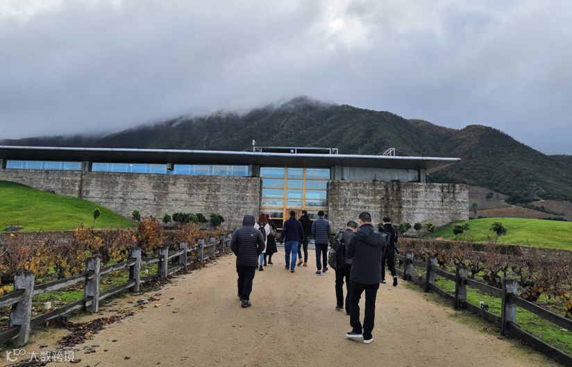 这是我们智利酒庄游第五站,当地时间6月7日早上7点,天不见亮,前往蒙特斯酒庄的商务车已准点到达J.BOUCHON宝松酒庄。