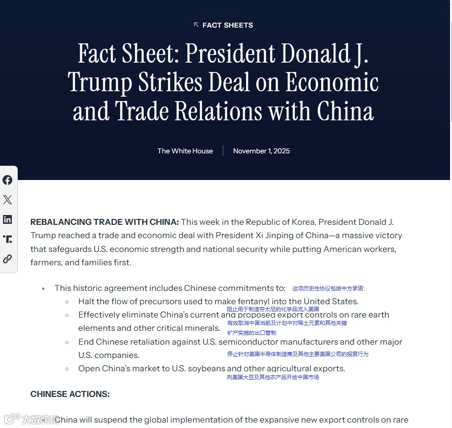 美方通过白宫官方文件、特朗普采访、美国工业与安全局透露等渠道,侧重强调 “让步换取利益”,细节披露更具体,且突出对华 “筹码效果”,其中白宫原文新增多项机制化条款与数据支撑:
