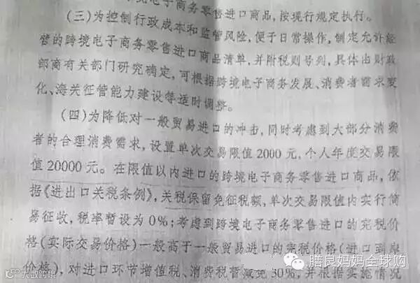近日流出的跨境电商新版税收政策文件显示,“为降低对一般贸易进口的冲击,同时考虑大部分消费者的合理消费需求,设置个人单次交易限值2000元,个人年度交易限值20000元,在限值以内,关税保留免征税额,单次交易在限值内税率暂设为0%,进口环节增值税、消费税减免30%,并根据实施情况适时调整;超过限值的均按照一般贸易方式征税,单个不可分割商品价值超过2000元的,按一般贸易进口货物全额征税。”