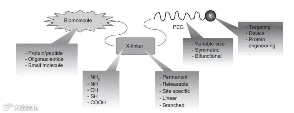 PEG化修饰在药物方面的应用主要为PEG化蛋白药物、PEG化肽链型化合物、PEG化小分子药物、PEG化脂质体等方面。