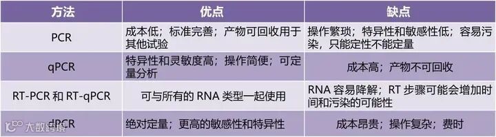 不同PCR方法的主要优缺点: