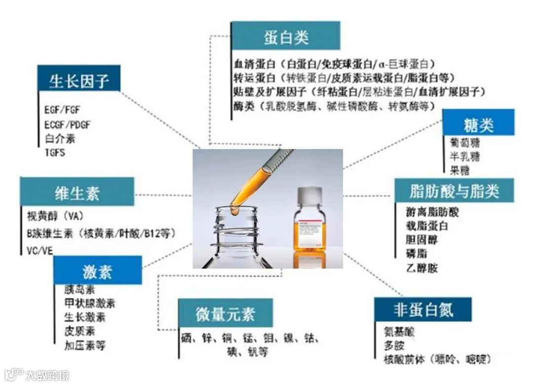 1、提供维持细胞指数生长的激素,某些含量微小营养物、低分子营养物质,促进细胞生长繁殖;