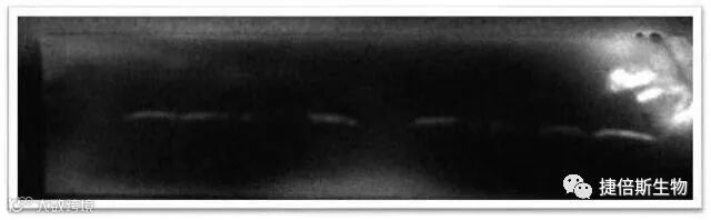 | 2 | 条带呈“倒U微笑”状,凝胶左右两头没有凝固好 | 重新制胶 |
