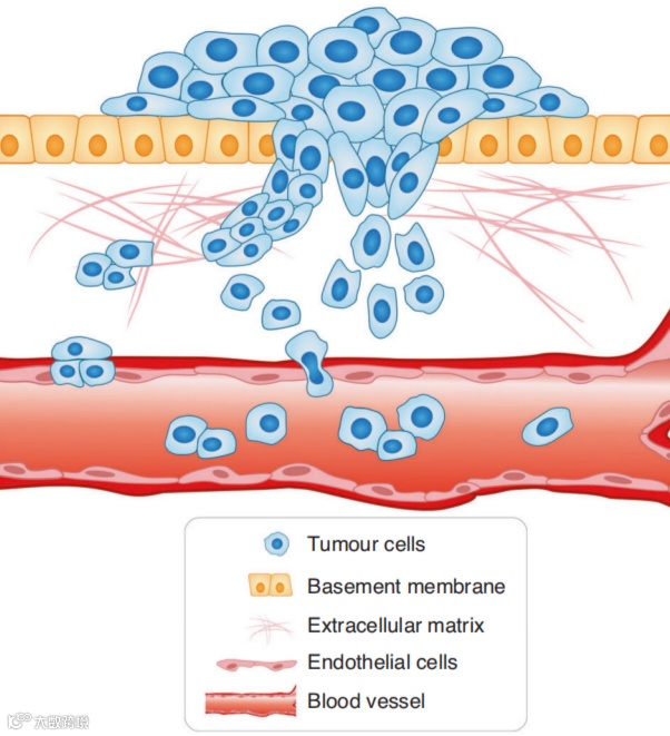外渗(Extravasation)入远端正常器官组织细胞。癌细胞必须离开血流或淋巴管才能形成继发性肿瘤。 癌细胞的粘附特性发生变化,通过穿透将血管腔与间质微环境分离的内皮细胞和周细胞层,从血管腔内进入组织,这一过程被称为外渗。 -