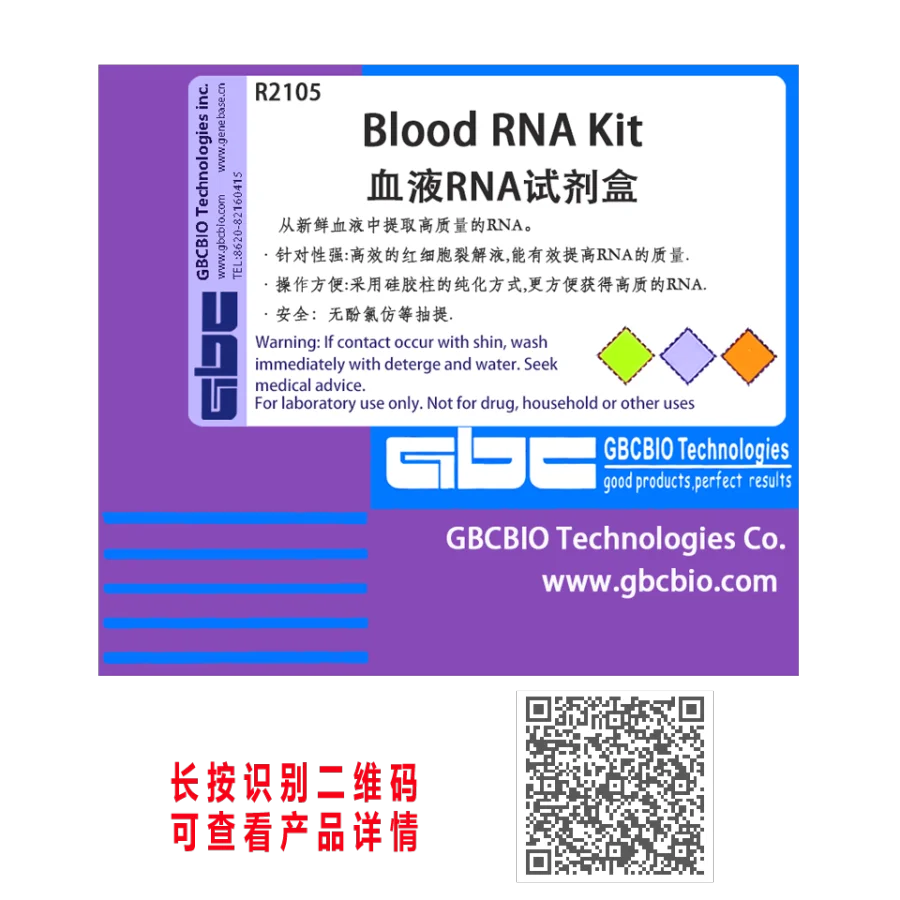 非常值得一提的是血液(包括血清、血浆、脑脊液、各种拭子或其他液体含量高的样本)RNA的提取用TRNsol和红细胞裂解的方法效果都不好,因为红细胞裂解液不含有RNA酶的抑制成分,这个过程RNA很容易降解,推荐使用捷倍斯生物 GBCBIO 的 Blood RNA Kit(R2105)血液RNA试剂盒。