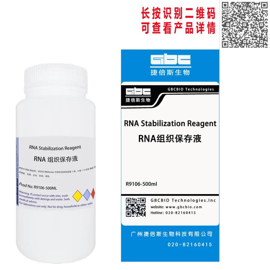 捷倍斯生物 GBCBIO 的 RNAlocker (R9106) 采用创新的液体RNAlater RNA 稳定试剂可迅速渗入组织,稳定和保护RNA的表达量。RNAlater技术迅速的保护作用确保了下游分析结果准确地反映了组织的基因表达谱。样本可长期保存,即使是多次反复冻融RNA也不会降解。利用RNeasy技术纯化储存在各种条件下的经RNAlater稳定后的样本,获得的RNA非常适合于各种下游应用,如Northern印迹杂交和RT-PCR