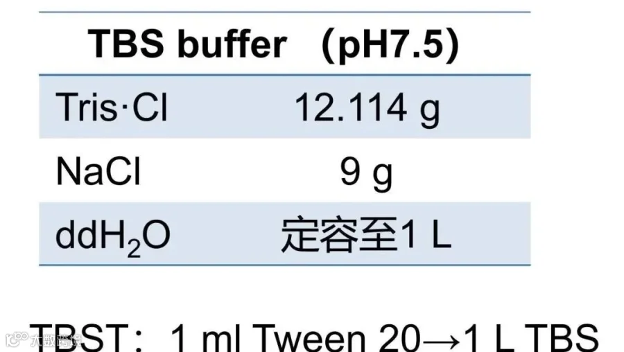 1L TBS 中加入 1ml Tween 20 就是 TBST。