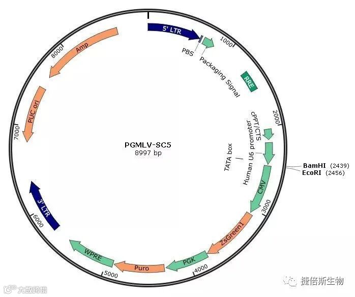 U6 promoter:U6启动子,真核启动子,启动shRNA的表达。