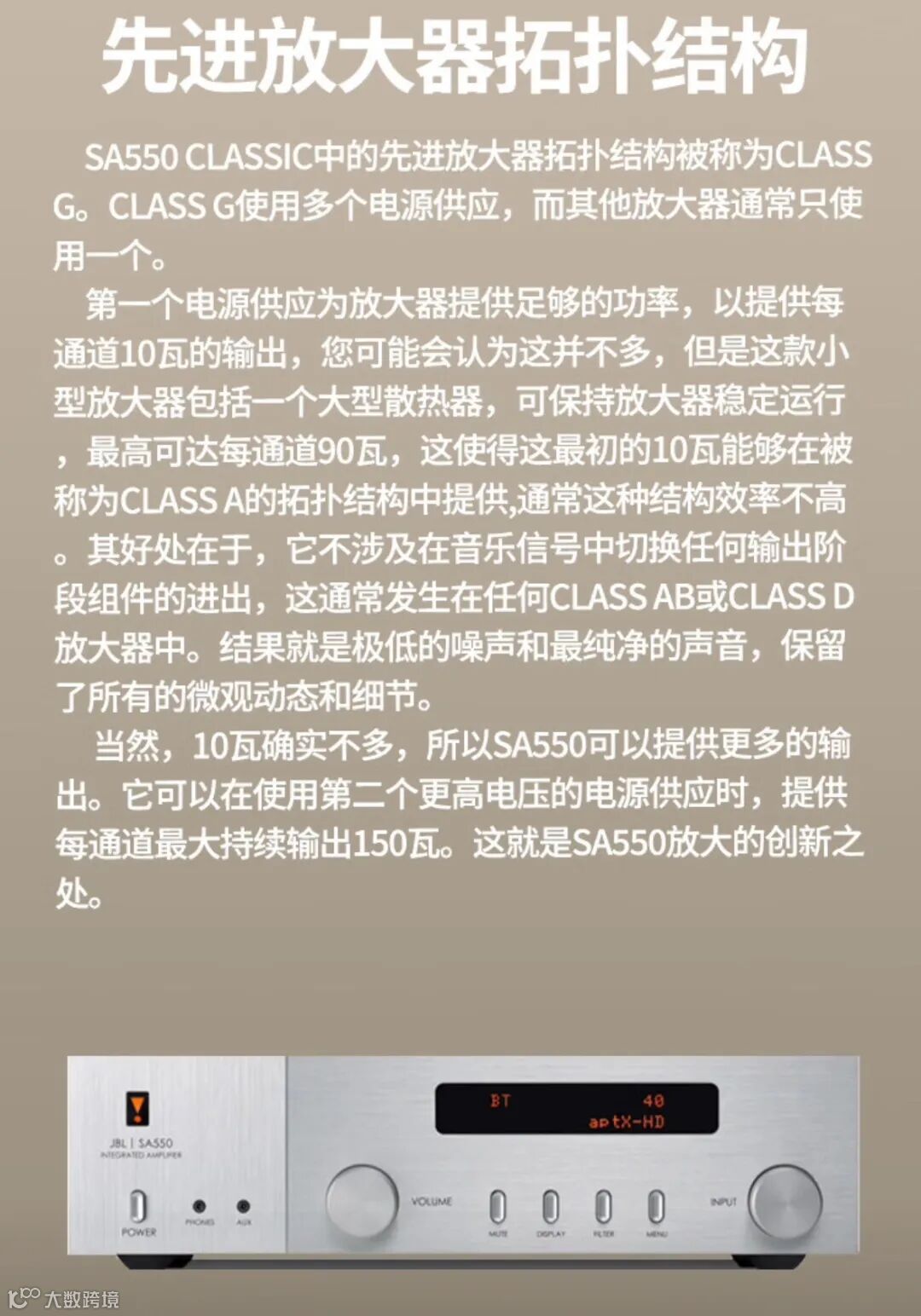 SA550采用了先进的Class G放大技术。您可以把它理解为一个“智能双电源”系统: