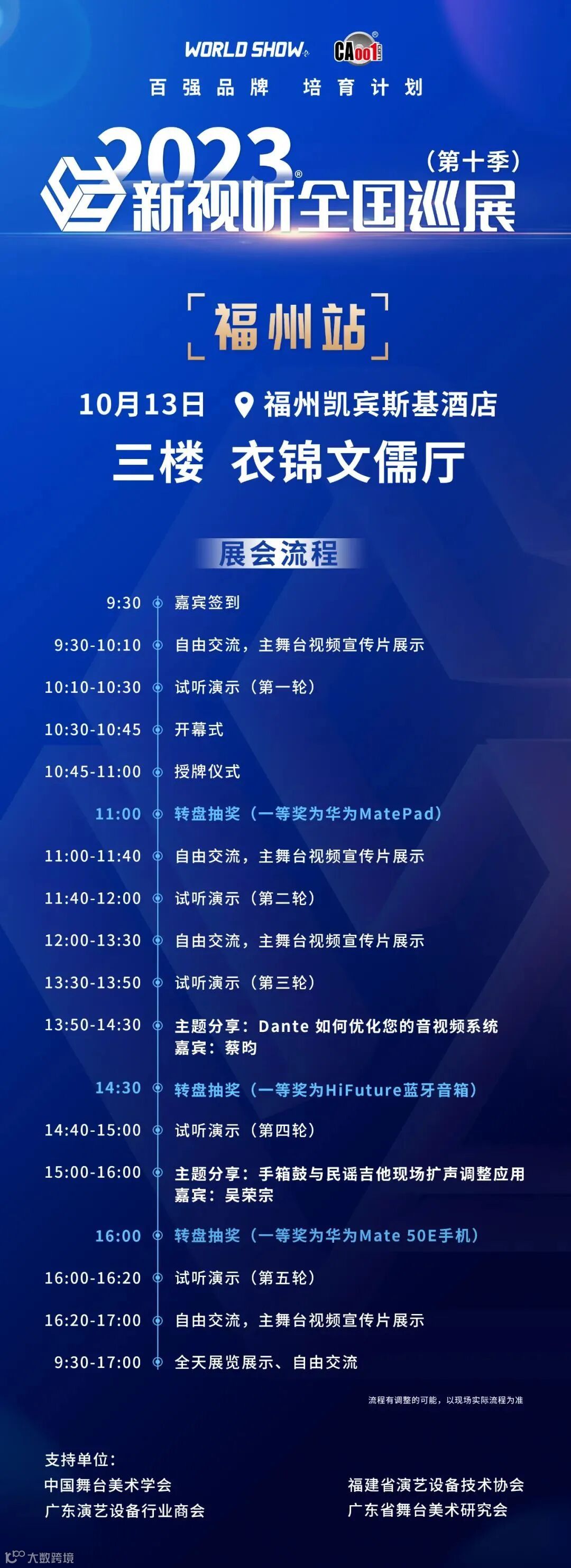 10月13日,2023年新视听全国巡展第十季第1站-福州站顺利进行。本站定于福州凯宾斯基酒店。本季巡展,荣悦达星展出产品包括JBL EON700系列有源蓝牙扬声器、声艺 FX16II紧凑型调音台、XILICA Neutrino开放式媒体矩阵。