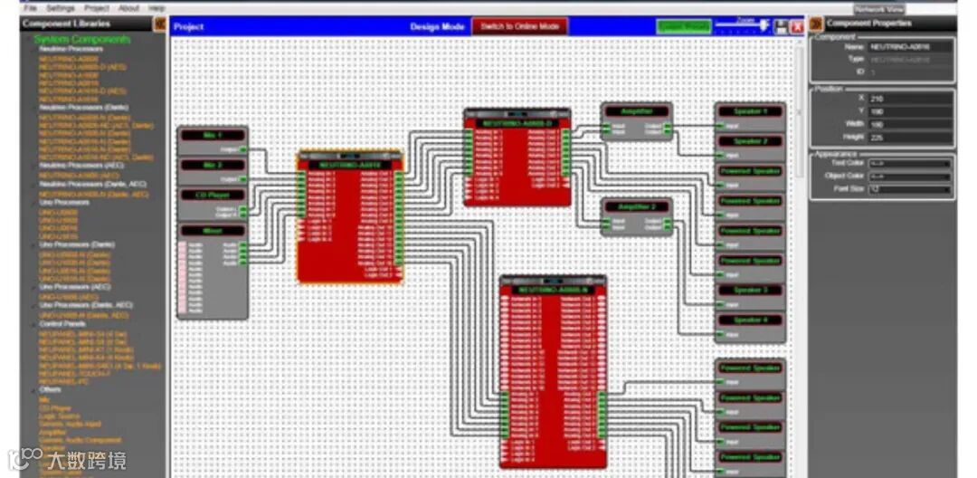 开放式架构:用户可自由拖拽DSP模块(均衡器、分频器、矩阵路由等),自定义处理流程,无需固化模板。