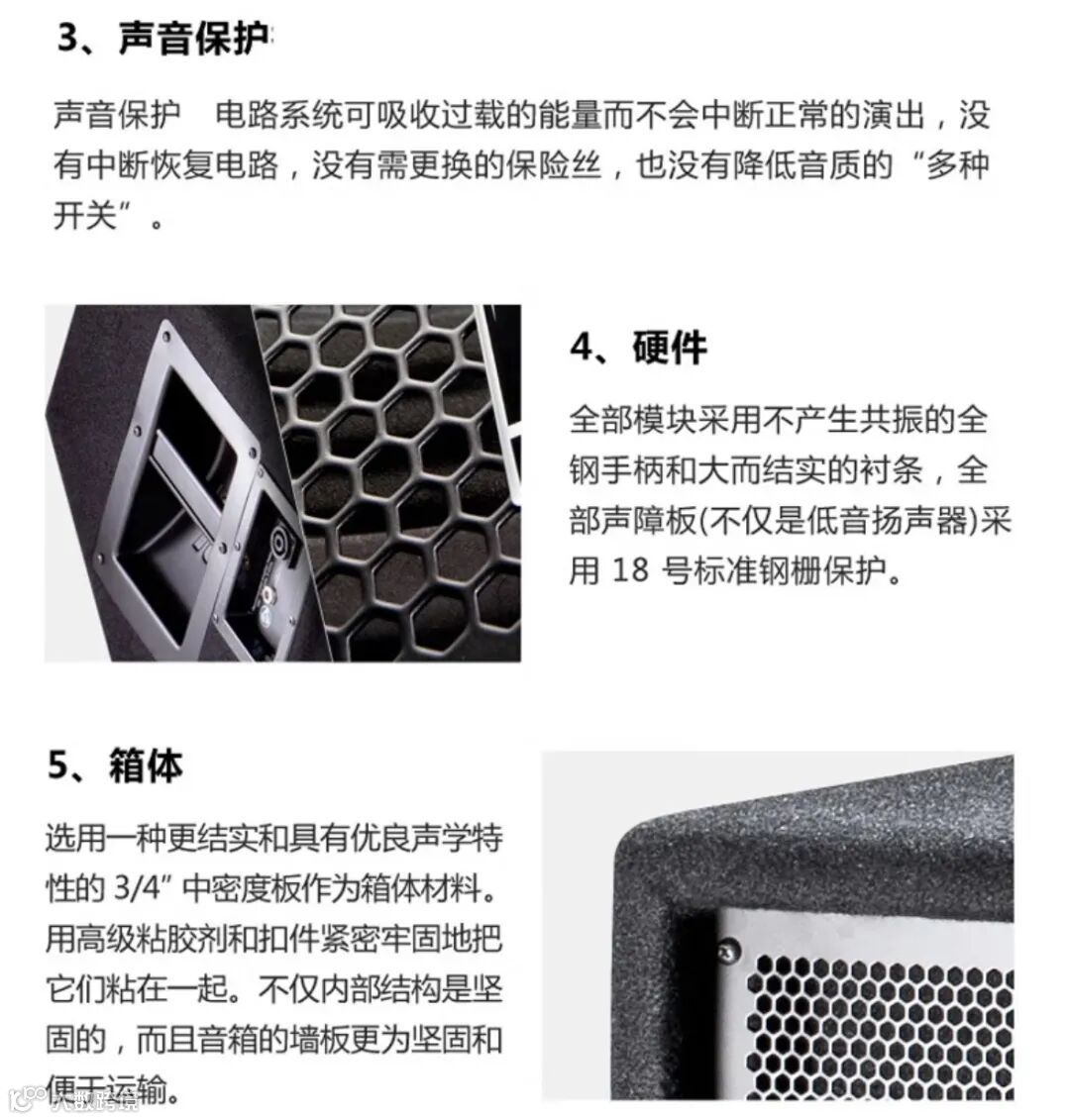 JBL核心技术加持:标志性压缩驱动器,人声清晰透亮,细节丰富不刺耳。扎实耐用:聚丙烯低音单元,经得起大动态考验,声音饱满有弹性。高效设计:优化箱体与倒相孔,提升低频力度,减少失真。