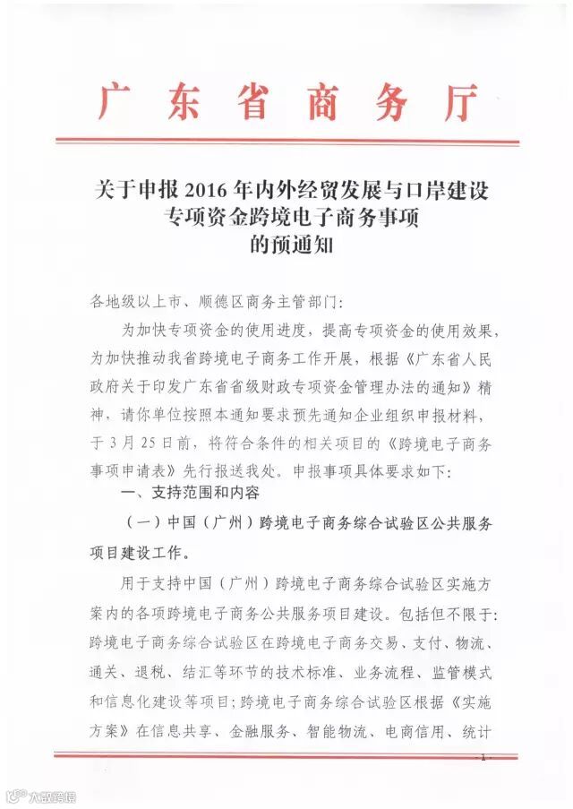关于申报2016内外经贸发展与口岸建设专项资金跨境电子商务事项的预通知