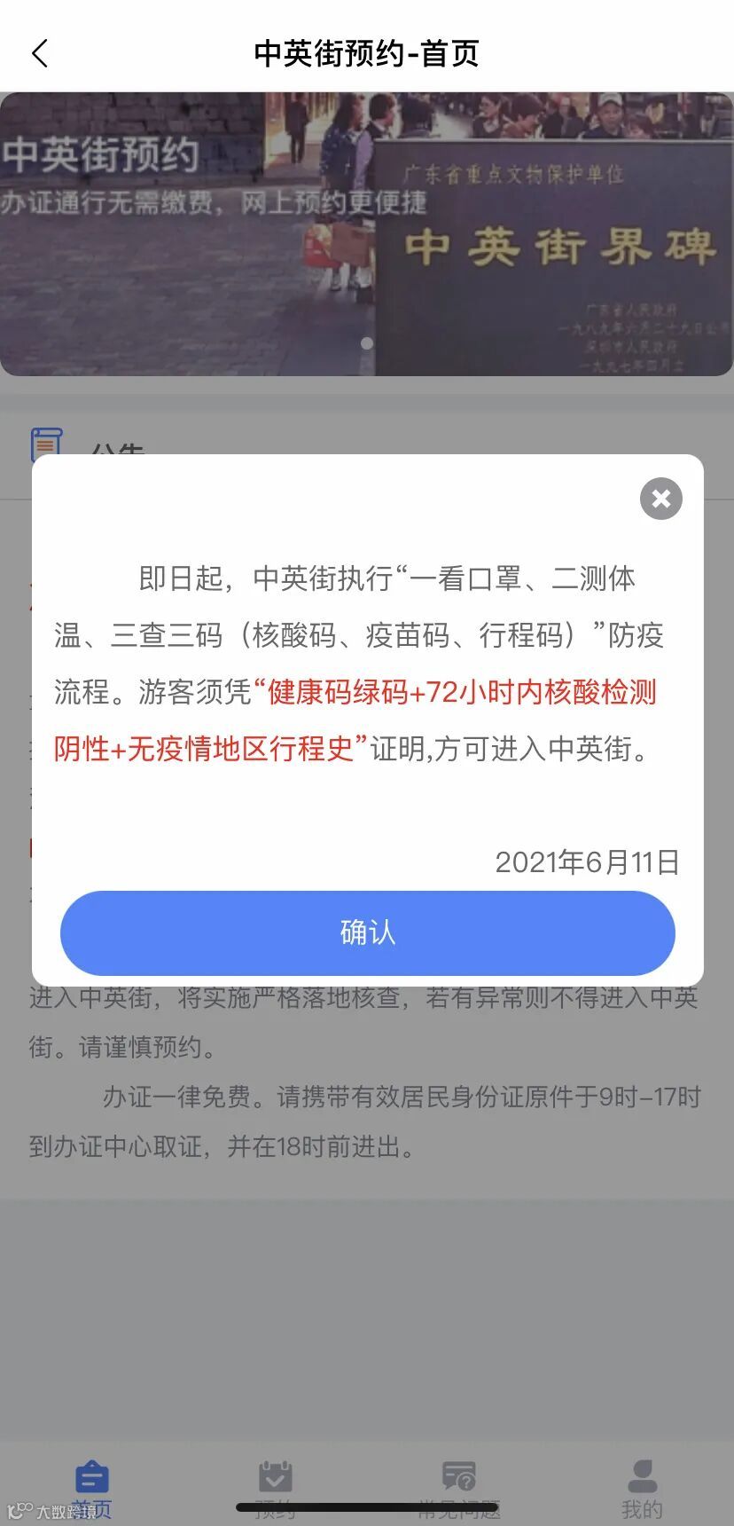 14天内来自或途径有国内疫情中高风险地区城市的人员进入中英街,将实施严格落地核查,若有异常则不得进入中英街。请谨慎预约。