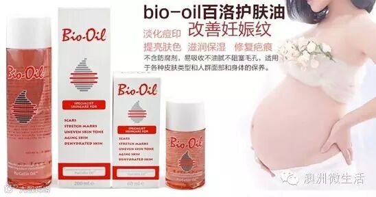 妊娠纹:取适量Bio-oil在腹部、胸部、大腿及臀部,从怀孕起,每天两次做环状按摩,以保持肌肤的弹性,防止妊娠纹的出现。