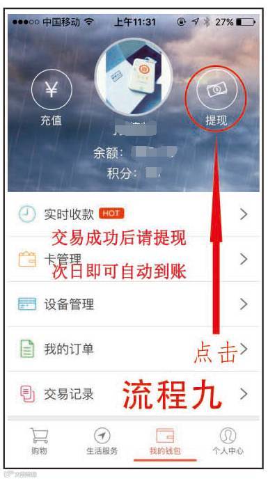 流程八:交易成功后请提现,点击我的钱包-提现(如下图)