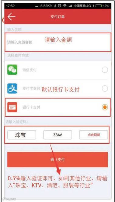 操作三:输入消费金额-默认银行支付【微信支付、支付宝支付暂未开通】-输入对应的行业代码(如下图)