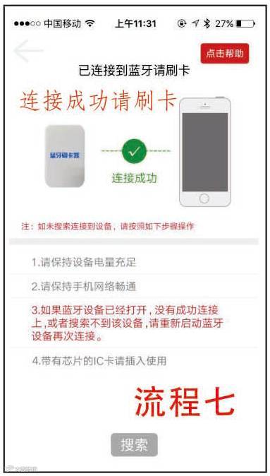 流程六:蓝牙配对成功,请刷卡或插卡(芯片卡只能用芯片交易不能用磁条交易)否则出现降级交易)如下图