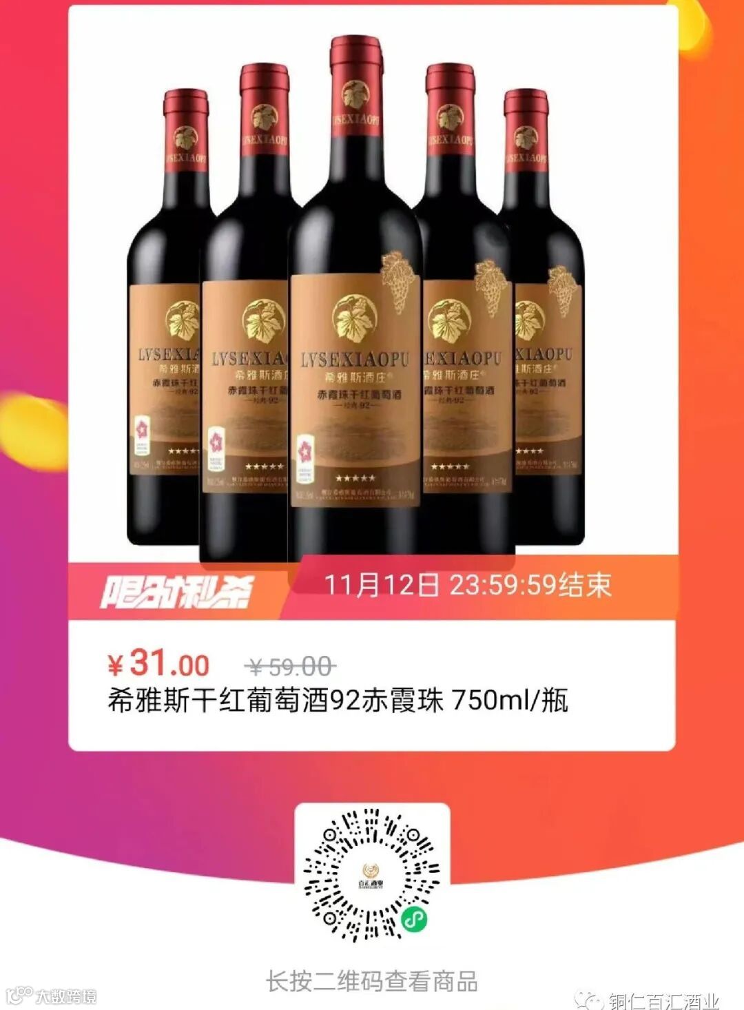 双十一期间白酒、红酒全场7.9折起(特价商品除外)活动时间:11月9日—11月11日