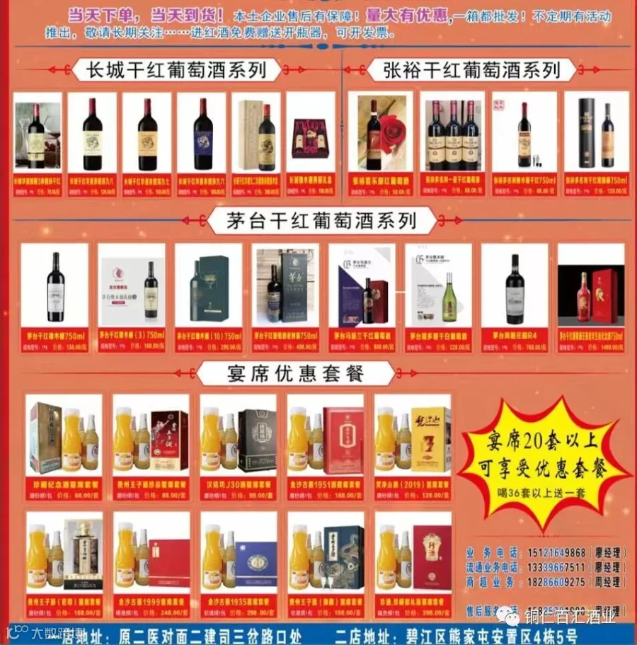 一店地址:铜仁市碧江区原二医对面二建司三岔路口处(百汇酒业)