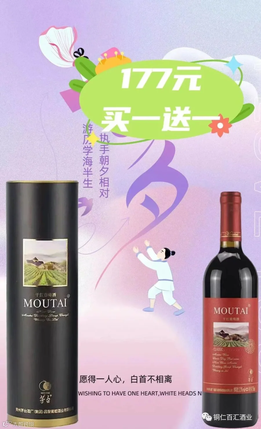 买茅台干红葡萄酒经典黑圆筒(原价178)送茅台干红葡萄酒经典红标一瓶原价88元(活动仅限3天)。