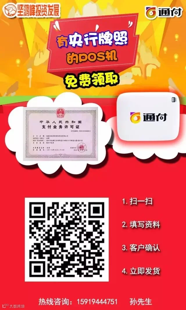 现在只要拥有一台专属于你的通付手机pos,一切资金问题都可解决