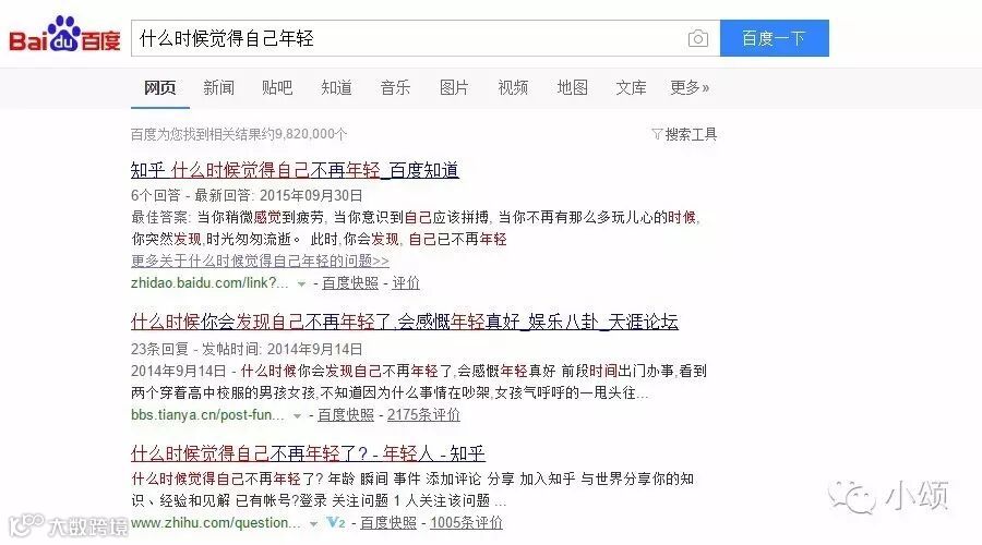 打开百度,搜索“什么时候觉得自己年轻”,搜出来的结果却满页都是一篇篇“什么时候觉得自己不再年轻”。