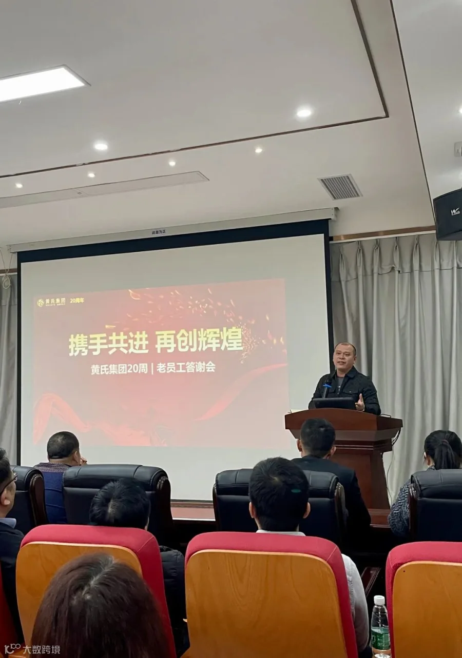 集团董事长黄杰文发表重要讲话:回顾黄氏集团过去20年的风雨历程,经历了从小工厂到今天的行业翘楚的蜕变,离不开一代又一代黄氏员工的努力,更离不开每一个老员工忠诚而执着的同行。让我们携手共进,为铸造黄氏集团百年企业梦再铸辉煌!
