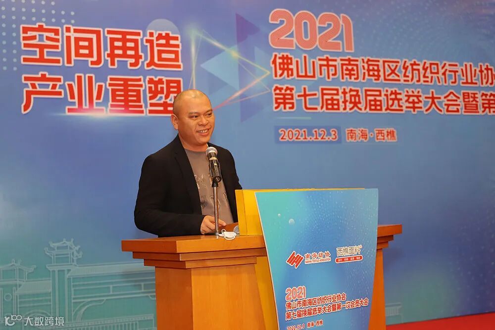 新会长黄杰文在大会中发表当选感言,他表示,任职期间将会继续发挥南商敢为人先、勇于进取的精神,一方面大力推动会员单位由加工为主逐渐转变为自产自销、具有市场竞争力的企业;借助政府力量,让还在租地生产的企业彻底扎根西樵;另一方面将带领会员单位积极配合政府做强、做优传统纺织产业工作,为纺织行业发展和地区经济发展做出积极贡献。