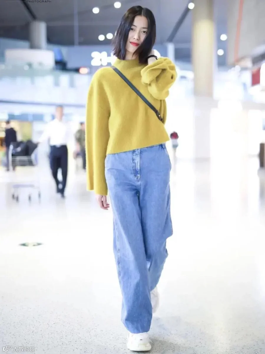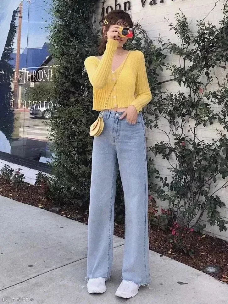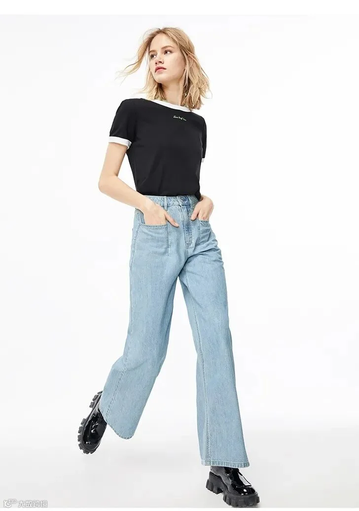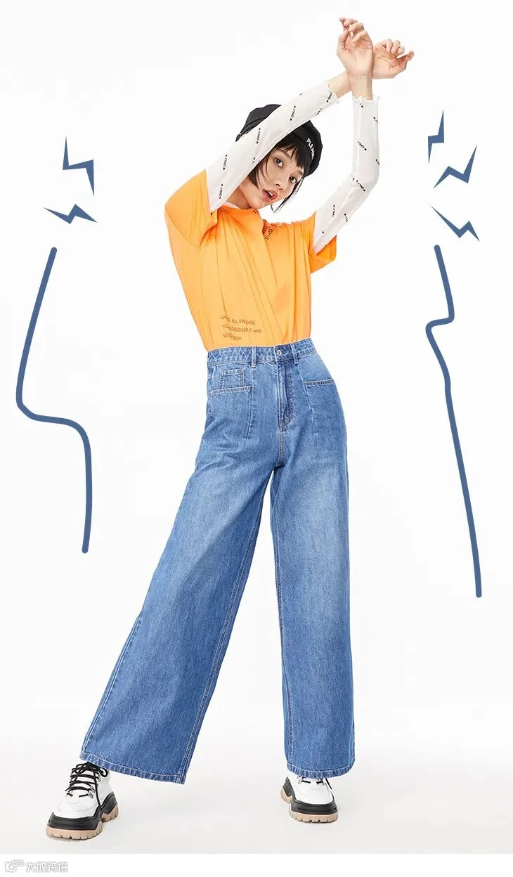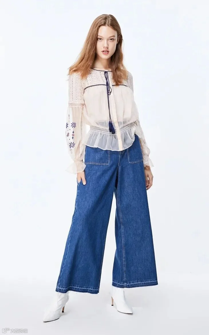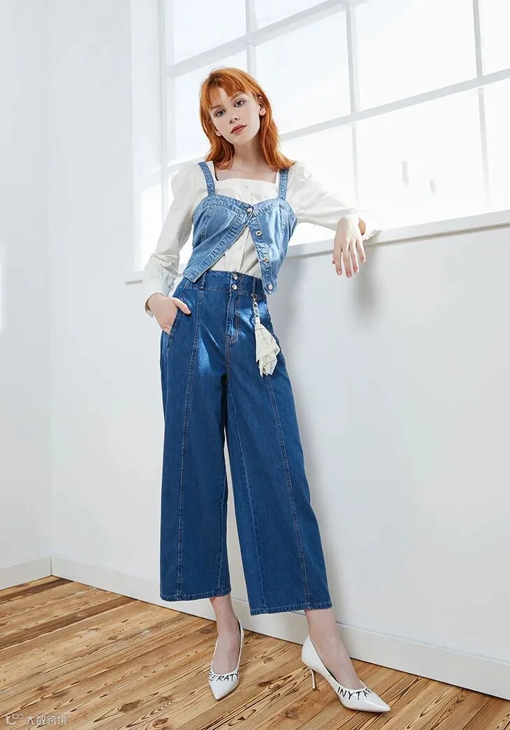 浅蓝色的阔腿牛仔裤,有浓浓的春夏气息,穿上显得元气满满。