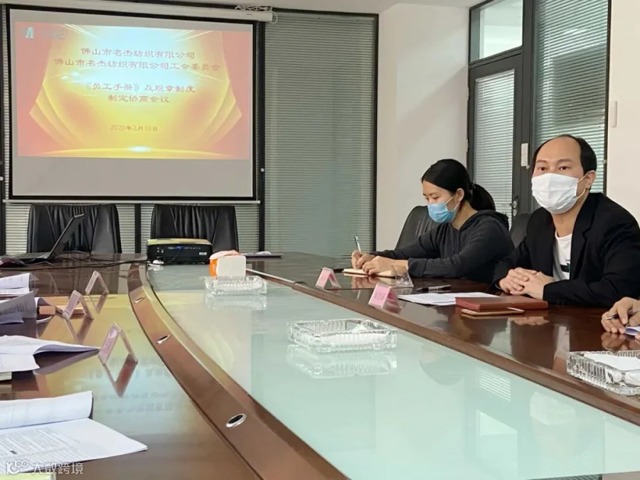 3月10日上午,佛山市名杰纺织有限公司企业代表郑创谋先生等人与佛山市名杰纺织有限公司工会委员会代表罗炳超先生等人就公司《员工手册》及相关规章制度召开协商会议。