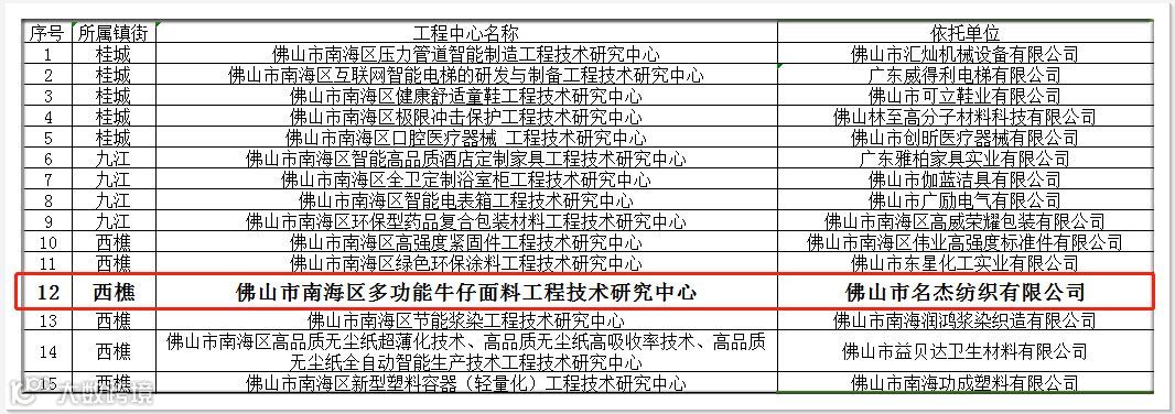 拟同意组建项目:佛山市多功能牛仔面料工程技术研究中心