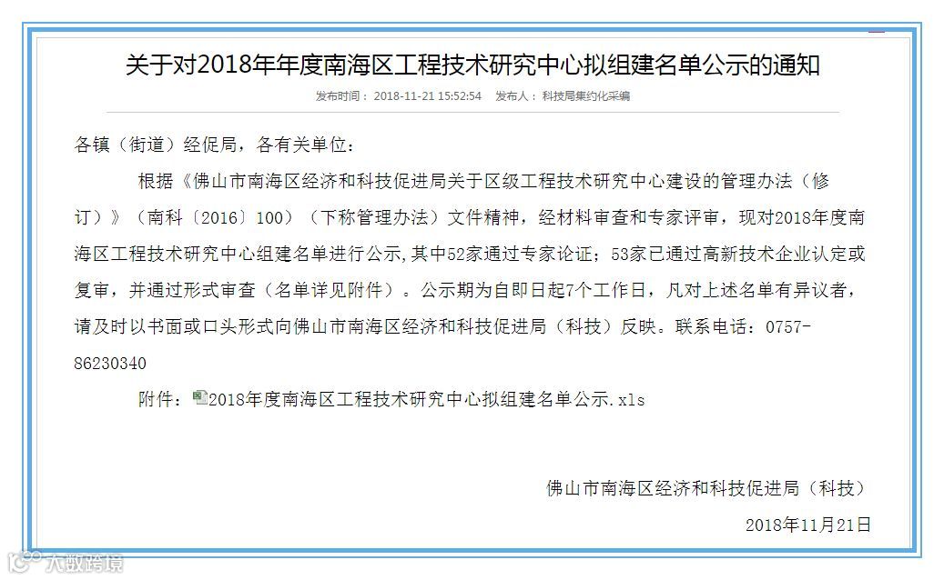 现将拟同意组建2018年佛山市工程技术研究中心项目予以公示。公示期自11月30日至12月6日