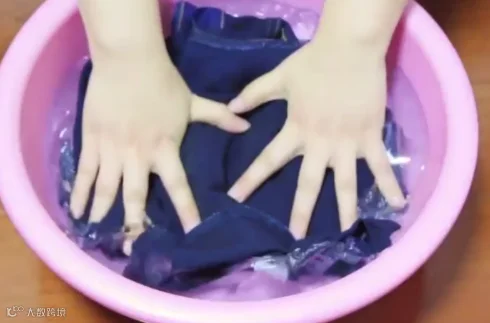 将牛仔裤翻面放入水中,浸泡30分钟。