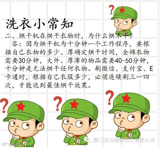 2.必须严格按照墙上的洗、烘标识说明及机器操作流程操作洗衣机、烘干机、干衣机等。