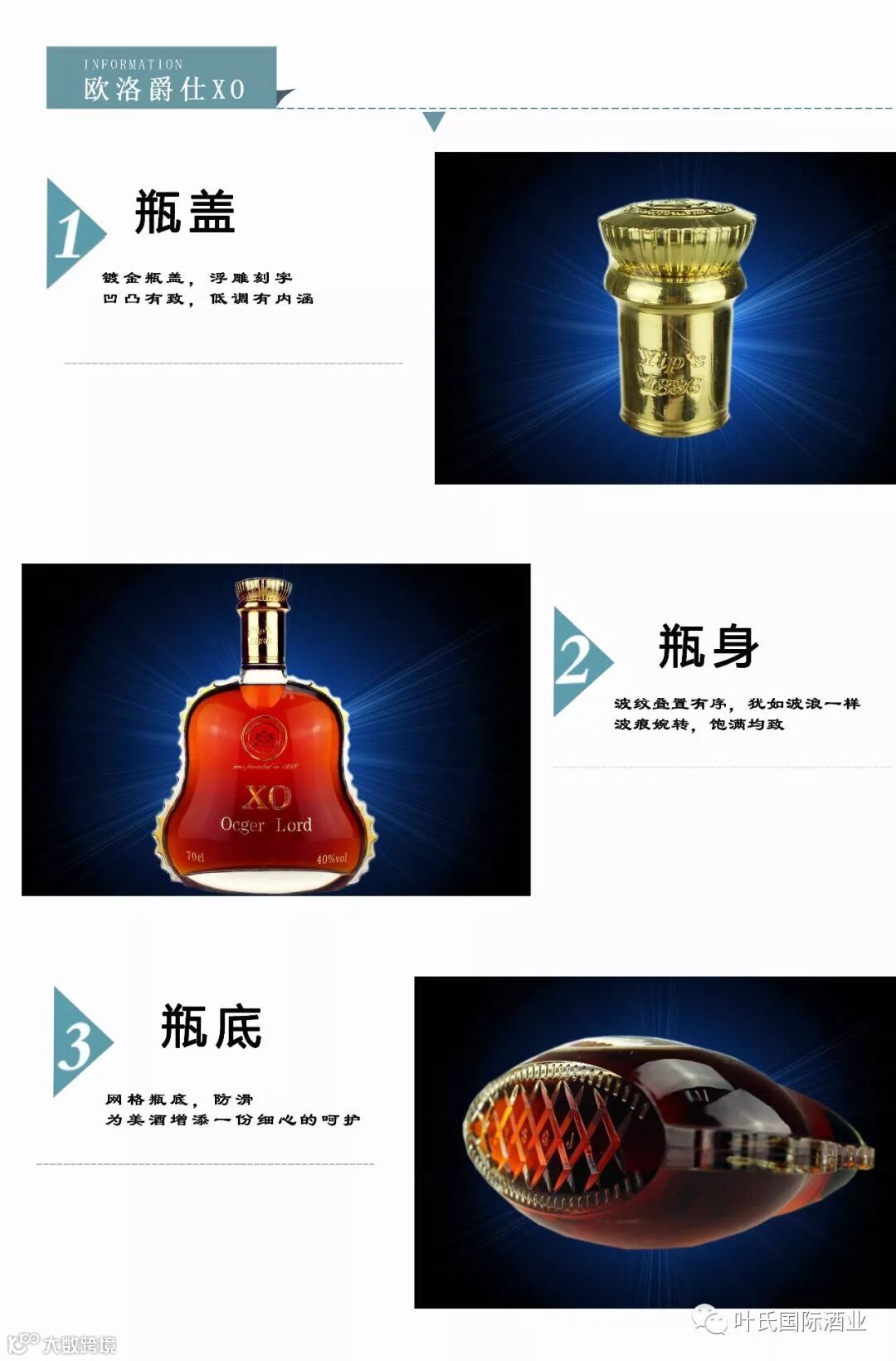 感谢广大人士对欧洛爵仕的喜爱,为了尊贵的你追求更完美的体验和享受,叶氏国际酒业在品质和服务上不断地提升,今天,欧洛爵仕换新装了,独特的自主设计的瓶身,无不体现我们对细节的追求,欧洛爵仕新装瓶身的设计以波浪形为外观,无时无刻地在鼓励着我们,未来不管遇到什么风浪,我们要像酒一样刚烈地扬帆起航,始终相信,在不久的将来,定会越过人生的一小波浪的考验,让自己达到了一个新的高度!欧洛爵仕不仅品质更卓越之余,而且外观更加低调有内涵,只为我们都能成为人生中最亮的一颗星!!!