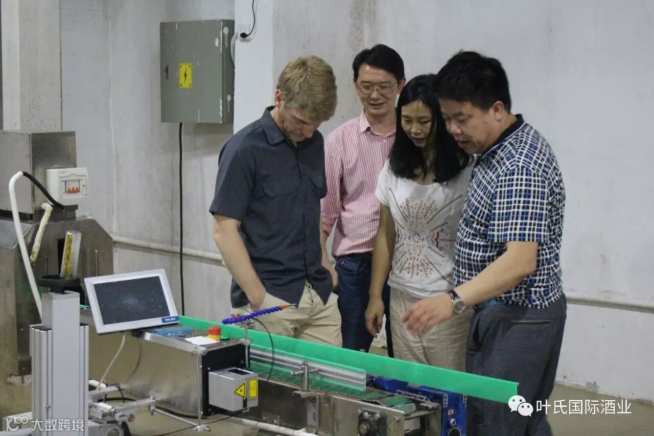 在我司董事长叶志文与总经理熊晓林(下图粉红色衬衫者)的陪同下,Léopold先生与酒庄中国区负责人钟小姐参观了我司的生产车间,并对我司的原液处理技术大加赞赏。
