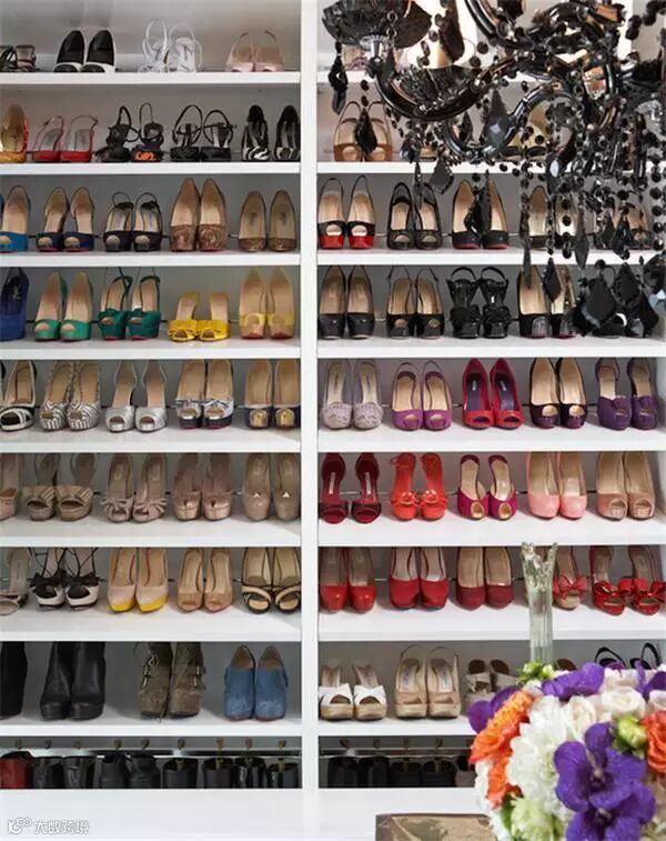 上下格栏的收纳设计,呈现出多彩的爱鞋,花纹的吊坠配饰让爱鞋更多彩。