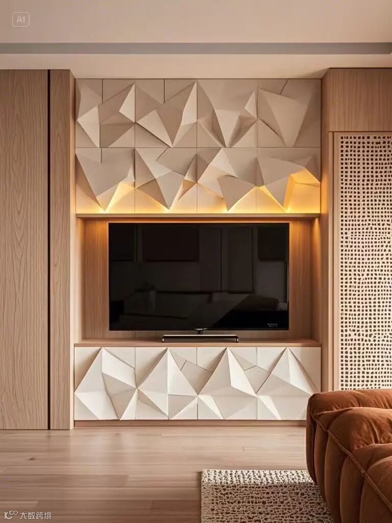应用场景:悬浮电视墙隐形收纳柜/几何拼接背景墙