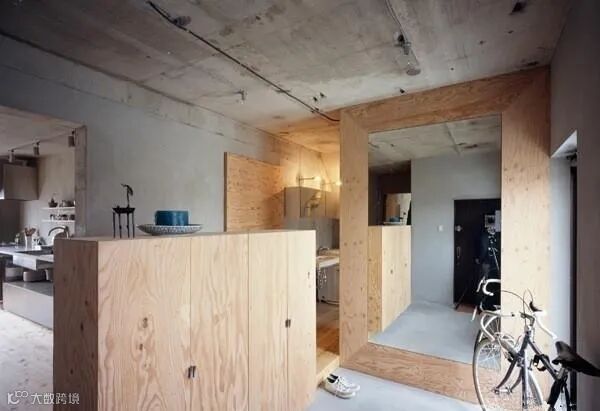 既然是毛坯房,那家具也不用太过讲究。和毛坯房的“原生态”比起来,原木家具似乎和整体环境很搭。能做收纳,也不显得突兀,整体特别和谐。